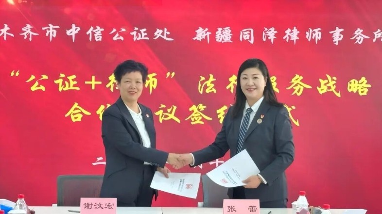 为加强公证制度与律师实务的深度结合,乌鲁木齐市中信公证处与新疆同泽律师事务所签订《“公证+律师”法律服务战略合作协议》。这一协议的签订,标志着两家法律服务机构建立了长期、稳定的战略合作伙伴关系,为今后具体合作项目的开展奠定了坚实基础。相信在党建工作的引领下,双方一定能够携手共进,为人民群众提供更加优质、高效的法律服务,为新疆法治建设贡献更大力量!
